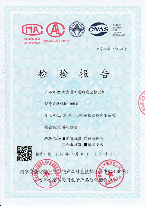 天眼-公共安檢系統專家,榮獲國家多項檢測、體系證書